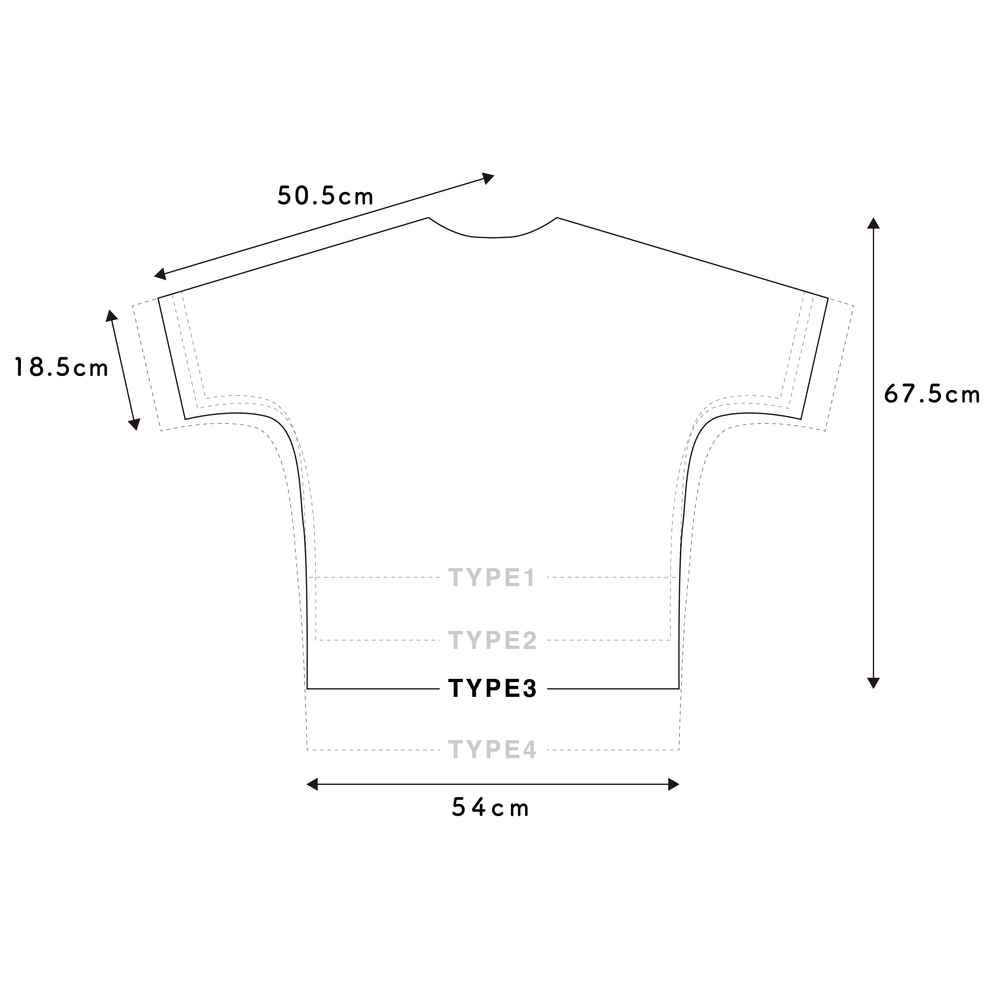 程よくゆとりを持たせたデザインの身幅は、全タイプ同じ寸法にて制作しております。そのため既存のサイズ感にとらわれることなく、好みのシルエットを選ぶことができます。